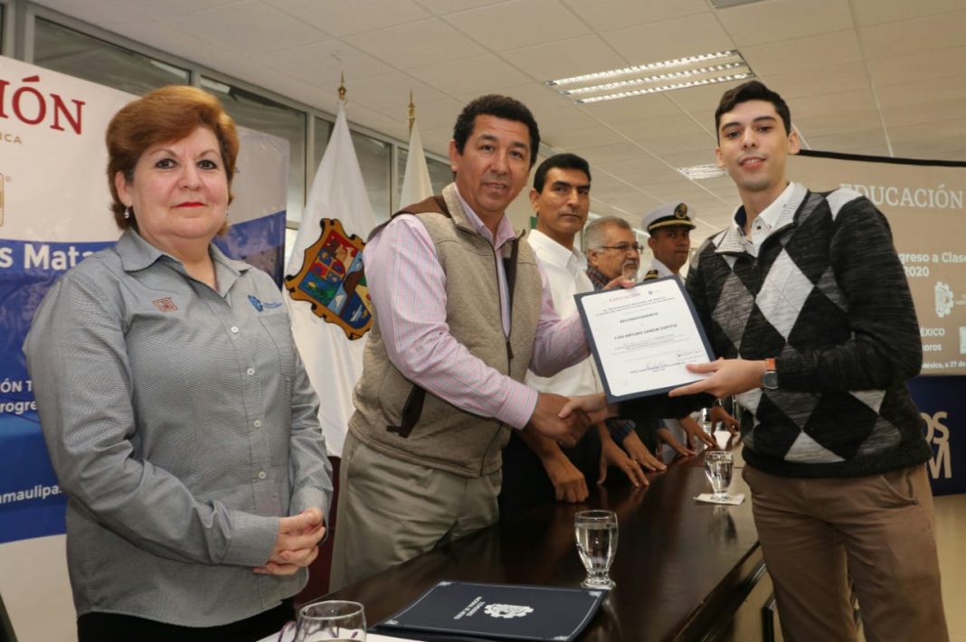 En el inicio del semestre enero-junio 2020, se entregó reconocimientos a 34 alumnos destacados del semestre agosto-diciembre 2019, a quienes el Presidente Municipal conminó a que se sigan esforzando y que eso les permita ser los mejores de su clase y de su carrera en cada uno de los semestres que cursen.