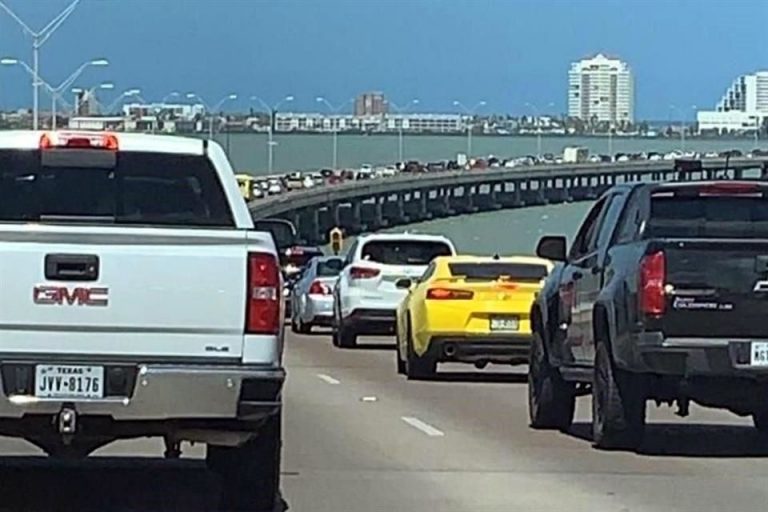 En redes sociales circulan videos e imágenes sobre las filas de automóviles en el puente Queen Isabella para poder llegar a la Isla, la cual queda en la costa sur del estado de Texas.