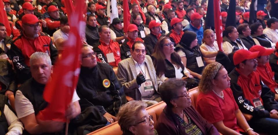 El Líder sindical se encuentra acompañado por su comité ejecutivo representado por el Lic. Luis Gabriel Mendoza Fierros, Subdirector General del SITPME y por Ramior Guerrero, Secretario del Trabajo.