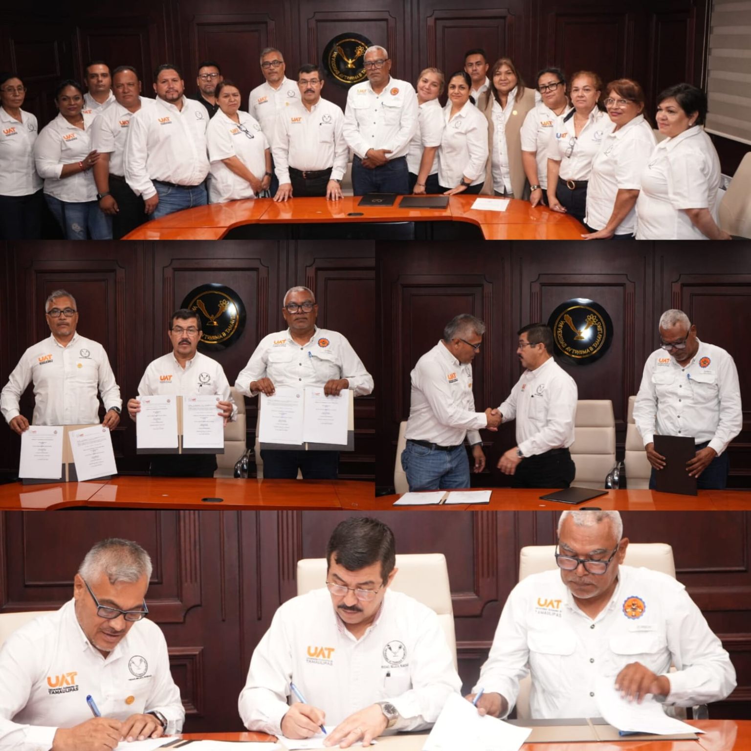 La Universidad Autónoma de Tamaulipas y el Sindicato Único de Trabajadores de la UAT (SUTUAT) consolidaron este lunes un paso significativo al formalizar la firma del Contrato Colectivo de Trabajo correspondiente al año 2025. Este acuerdo refuerza las relaciones laborales y establece bases firmes para continuar avanzando de manera conjunta en beneficio de toda la comunidad universitaria.