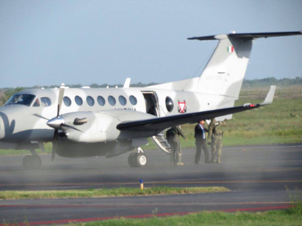El contingente ingreso hasta la pista donde dos aviones de la Secretaria de Marina permanecían con los motores encendidos esperando a la tripulación.