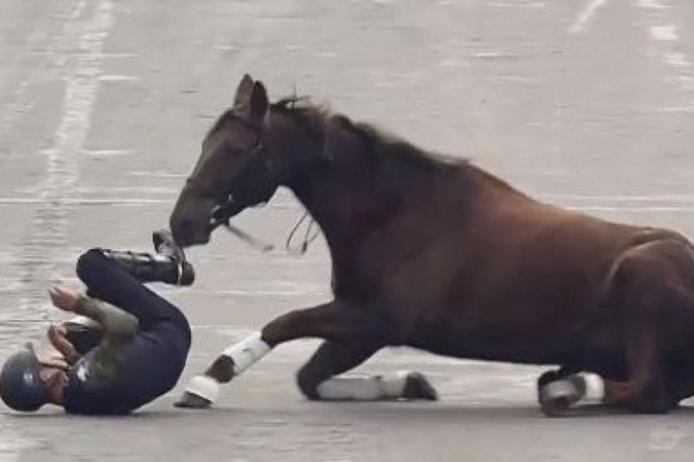 Durante la presentación del desfile conmemorativo de la Revolución Mexicana, un jinete y su caballo cayeron durante el espectáculo ecuestre que se realizó en el Zócalo de la Ciudad de México.