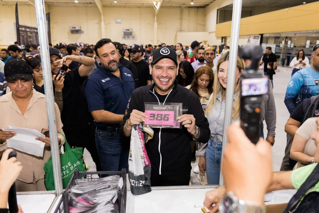 El alcalde Beto Granados participó este día en la entrega de folios para el Maratón Bicentenario, evento realizado en el Centro de Convenciones Mundo Nuevo. Acompañado por el secretario de Turismo de Tamaulipas, Benjamín Hernández Rodríguez, el presidente municipal presenció la entrega oficial y aprovechó la ocasión para recibir su propio folio. Asimismo, se informó que el maratón iniciará mañana a las 5:30 de la mañana.