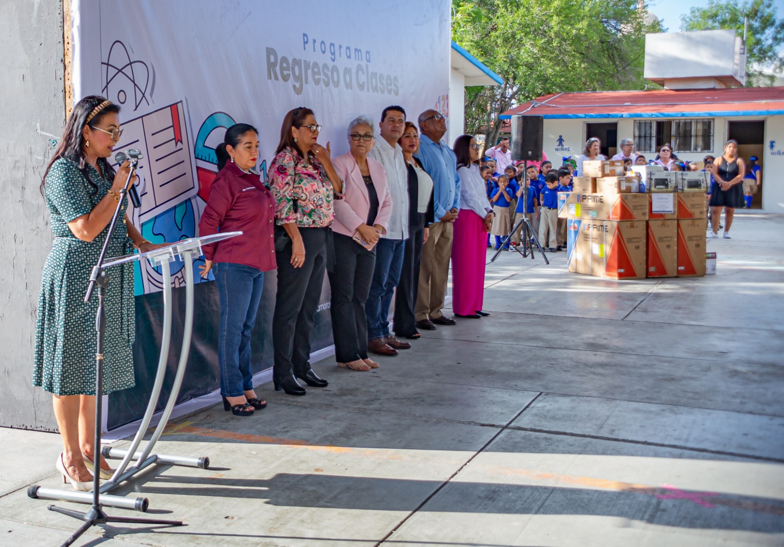 En la escuela primaria Primitivo Shears Villarreal, ubicada en la colonia Praxedis Balboa, autoridades municipales encabezadas por el secretario de Bienestar Social, Carlos Ballesteros Gálvez, quien asistió con la representación del Alcalde Mario Alberto López Hernández entregaron beneficios por un monto superior a un millón 500 mil pesos.