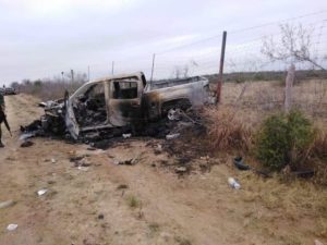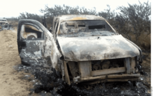 Al continuar las inspecciones por parte de los efectivos militares y estatales, localizaron un kilómetro más adentro del primer punto, cuatro camionetas calcinadas, algunas de ellas clonadas para hacerlas pasar como de la Secretaría de Marina, y alrededor de las mismas, los cuerpos de más personas también calcinadas y semicalcinadas.