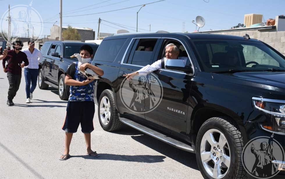 A bordo de una suburban negra, el mandatario se dirige a su único evento en esta ciudad en el fraccionamiento Portal del Roble, programado a las 12:30 del mediodía.