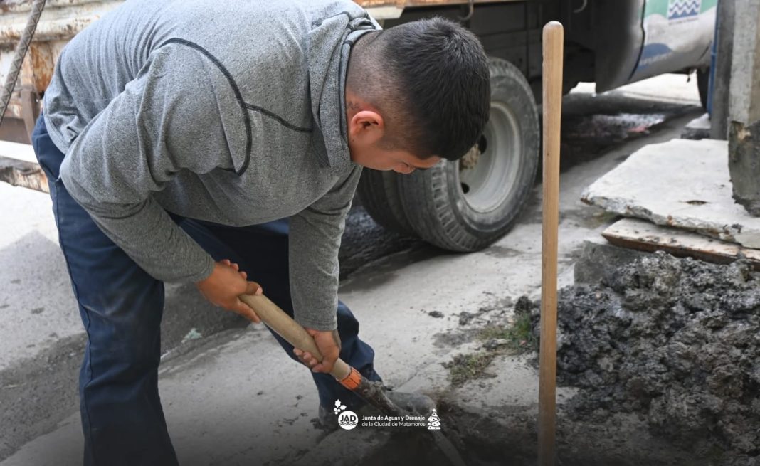 Siguiendo la instrucción del alcalde de Matamoros, Beto Granados, personal de la Junta de Aguas y Drenaje, a través del área de cuadrillas, realizó trabajos de reparación de una fuga de agua detectada en la Avenida Solidaridad, en la colonia Las Norias.