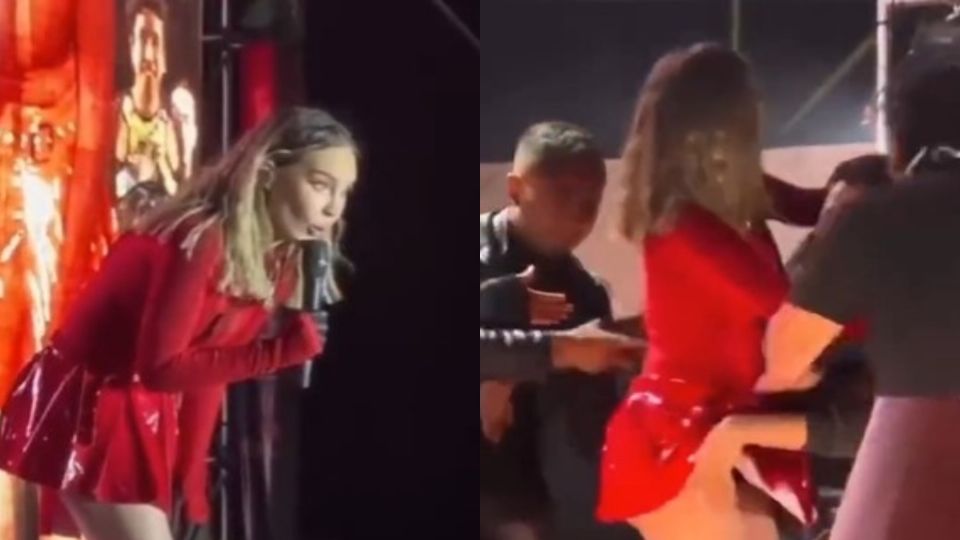 En redes sociales circula el video que muestra a Belinda en su presentación que tuvo en la Feria de las Fresas en León en el estado de Guanajuato. De un momento a otro se alcanza a ver que un fan, en aparente estado de ebriedad, interrumpe la presentación y se lanza contra la cantante.