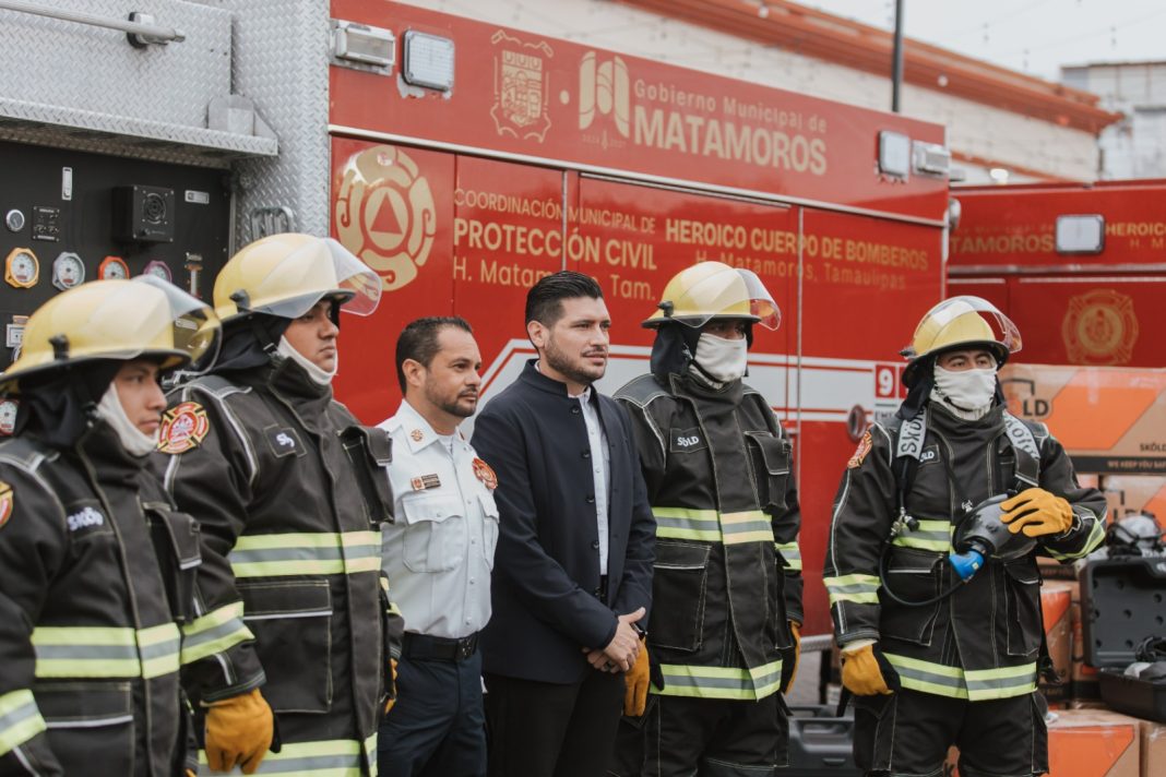 También se entregaron 40 trajes estructurales nuevos para bomberos, con un costo de 40 mil pesos cada uno, adquiridos gracias a la aportación mensual de un peso que realizan los usuarios de la Junta de Aguas y Drenaje de Matamoros.