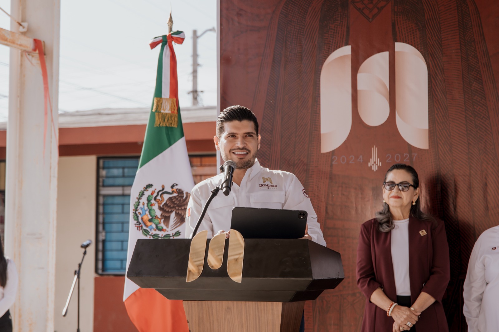 El Alcalde Beto Granados, junto a su gabinete, encabezó la ceremonia de honores en la escuela primaria José Doroteo Arango.