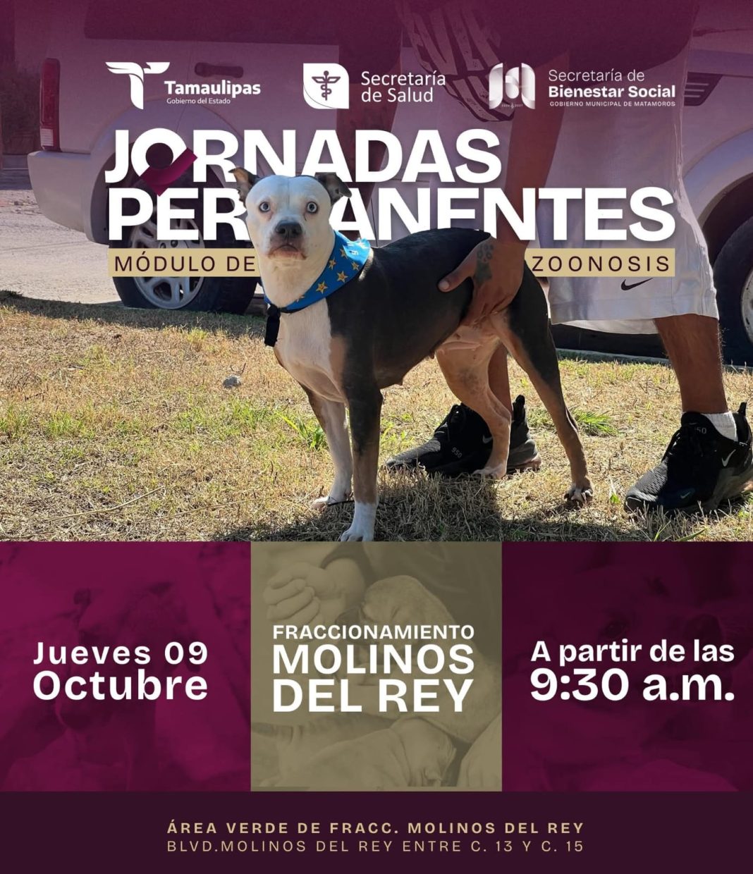 Porque ellos también son parte de la familia, este jueves el Módulo de Zoonosis llegará al área verde del Fraccionamiento Molinos del Rey, a partir de las 9:00 de la mañana.
