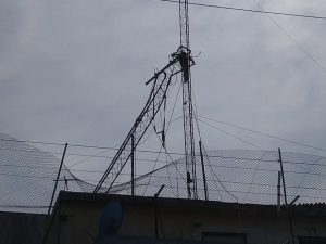 En el sitio estaba trozada una antena por la mitad, esta misma se le estaba dando mantenimiento por algunos trabajadores.