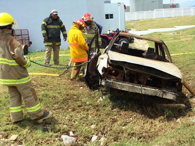 Entre los puntos importantes del curso impartido por técnicos auxiliares de la CGPC, destacó la operación de equipo hidráulico formado por un generador, manguera de alta presión y quijada hidráulica, identificación de derrame de combustible, cables de electricidad y técnicas de separación de puertas, medallón y ventanillas.