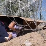 Con su hija en brazos mujer conmueve al cruzar el alambre de púas