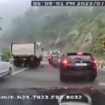 Roca se desprende de un cerro y aplasta tres coches