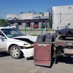 Por ir usando el celular, un chofer de un tráiler se le atravesó a un automóvil...