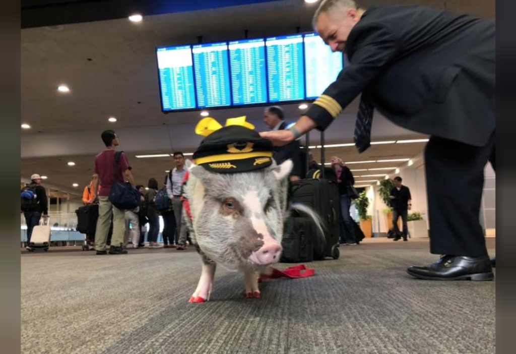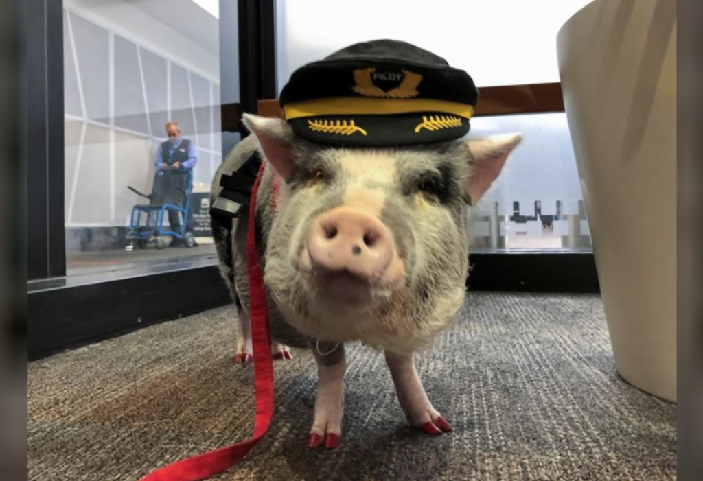 Es posible que los cerdos no vuelen, pero LiLou, el cerdo de la terapia, quiere hacer que los viajes aéreos sean menos estresantes. LiLou la cerdita, de cinco años, y su dueña, Tatyana Danilova, forman parte de la “Brigada Wag” del Aeropuerto Internacional de San Francisco, un programa que lleva animales de terapia al aeropuerto para animar a los pasajeros y ayudar a aliviar las ansiedades del viaje.
