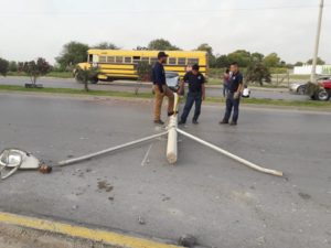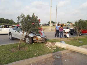 Los hechos ocurrieron en la Avenida Palmarés del fraccionamiento con el mismo nombre cuando la mujer que iba acompañada de su hijo, conducía su automóvil Chevrolet Cavalier color gris y circulaba de poniente a oriente cuando una pesera se le atravesó y al tratar de esquivarla chocó contra el poste y lo tumbó.