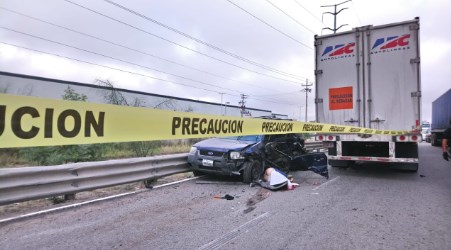 Reynosa, Tamaulipas.-Una mujer sin vida y un hombre lesionado fue el saldo de un fuerte choque cuando la camioneta en la que viajaba fue impactada por un tráiler, cuyo chofer emprendió la fuga para evadir a las autoridades.