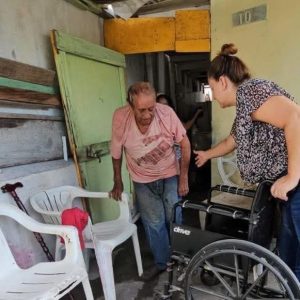 La señora Kenia recibió la silla con una sonrisa pues ya había tocado varias puertas con la petición y nadie la escuchaba, solo Claudia Jiménez tocó su corazón y la entregó el día del amor, porque el amor al prójimo l