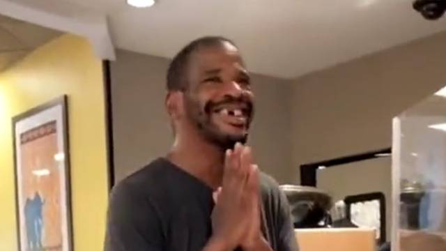 Al escuchar esto, el gesto de preocupación que tenía el hombre en situación de calle se convirtió en uno de profundo agradecimiento.