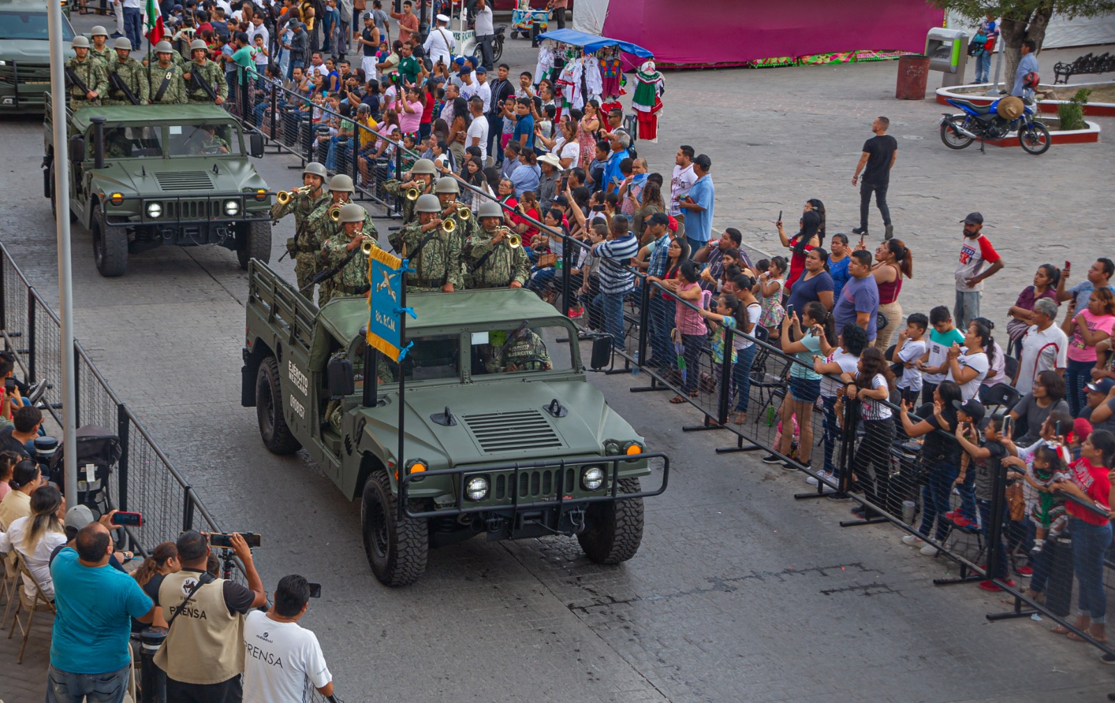 En el lucido desfile participaron más de 30 contingentes, entre ellos, de la Secretaría de Marina, de la Secretaría de la Defensa Nacional, Guardia Nacional, entre otras corporaciones de seguridad de niveles estatal y municipal.