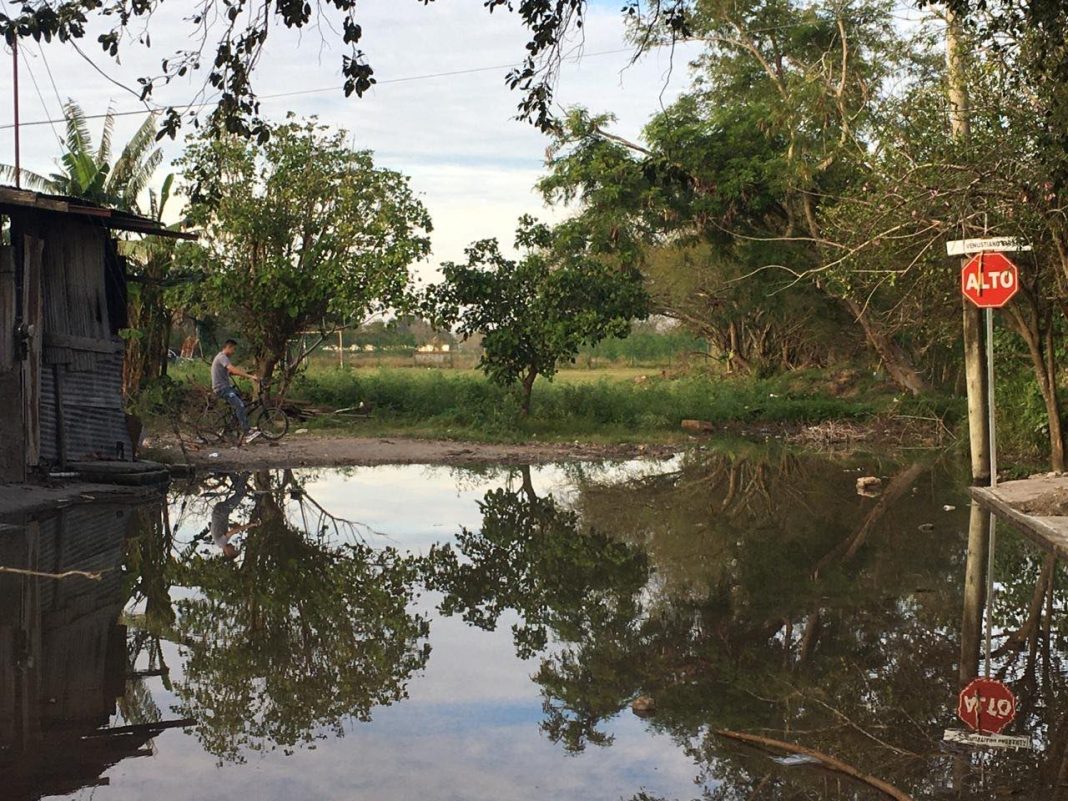 En el citado cruce es paso de estudiantes y trabajadores de la maquiladora que diariamente tienen que cruzar por dicho lugar para tomar el transporte público. Para eliminar el problema refieren, es sacar todo el agua y reparar la calle porque la conexión del drenaje quedó en una parte baja y por lo cual se tapa y regresa el agua sucia a las casas por la tubería.