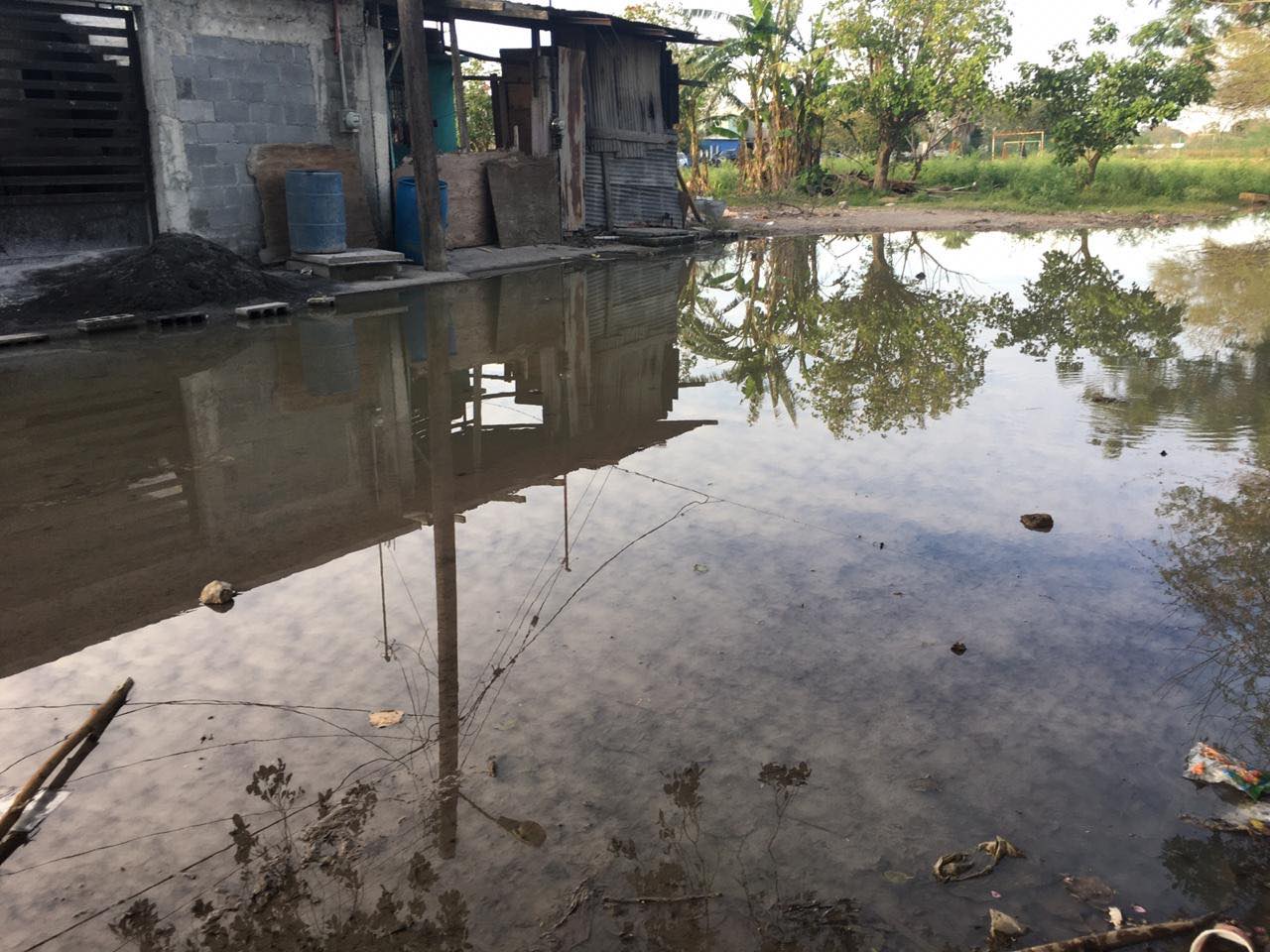 Vecinos ya se cansaron de solicitar una bomba para sacar toda el agua de drenaje de su calle, debido a que es un foco de infección terrible.