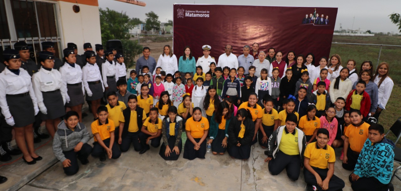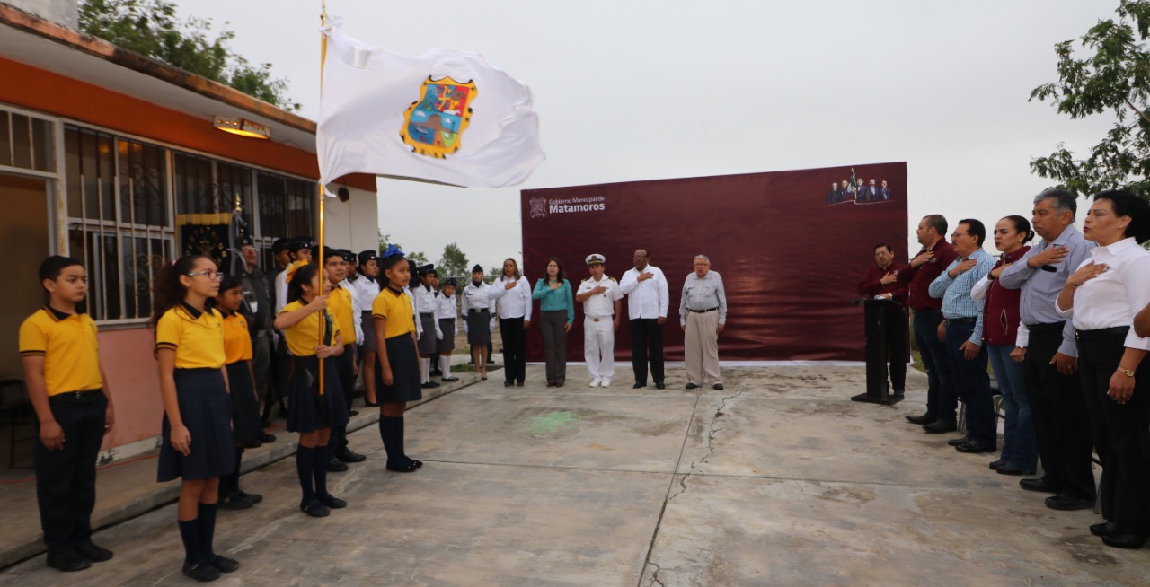En la ceremonia cívica estuvieron presentes: El Capitán de Corbeta, Lino Arturo Vargas, con la representación del Sector Naval; la secretaria de Salud, Nidia Maldonado Ruiz; Julián Garza Hernández, secretario de Fomento Económico y del Empleo, así como la directora de Educación Básica en el municipio, Saraí Martínez Dragustinovis.