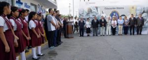 Este jueves por la mañana, autoridades municipales y educativas participaron en la ceremonia cívica para conmemorar el 102 aniversario luctuoso del Profesor y Poeta, José Arrese Falcón.