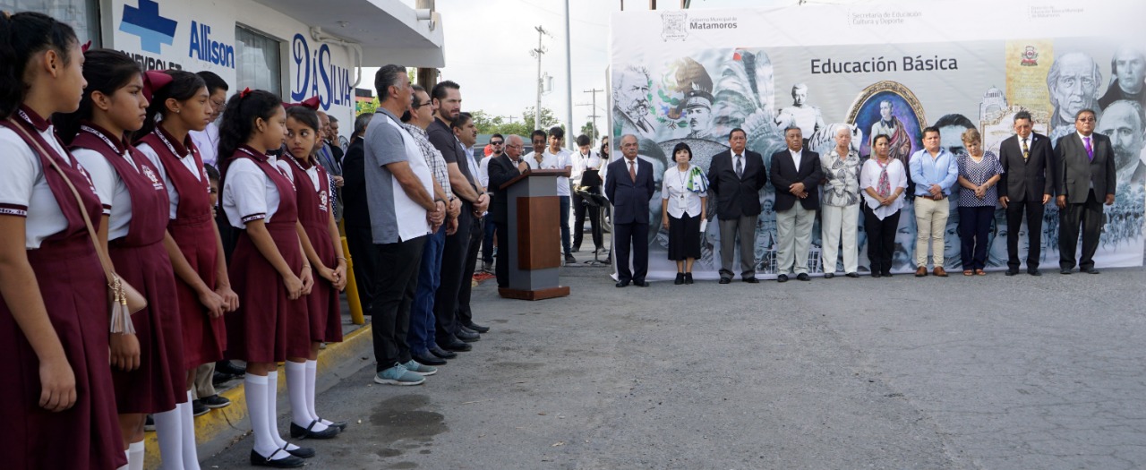 La ceremonia cívica para rendir homenaje al Profr. Arrese se realizó frente al busto en su honor, ubicado en las calles Canales y la que lleva su nombre, en presencia de alumnos de la escuela Secundaria Técnica # 46, de la Preparatoria “Miguel Hidalgo”, de la Universidad de Matamoros, y la Primaria José Arrese turno matutino.