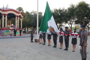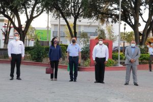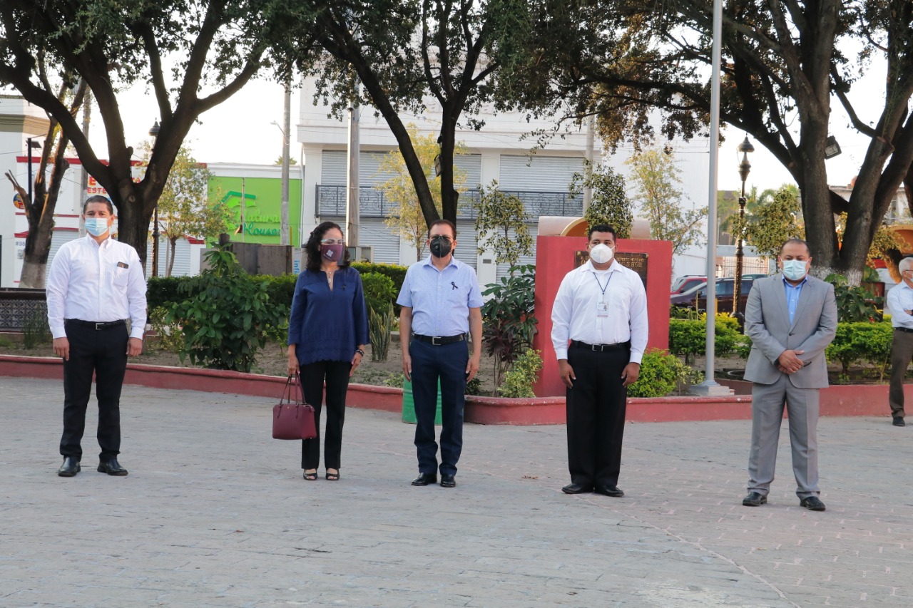 La ceremonia cívica realizada en la plaza “Miguel Hidalgo”, en donde se guardaron todas las medidas de seguridad sanitaria y solamente participaron 20 personas, incluidos funcionarios, regidores e integrantes de la escolta, fue presidida por el secretario de Educación, Cultura y Deporte, Alejandro Villafañez Zamudio.