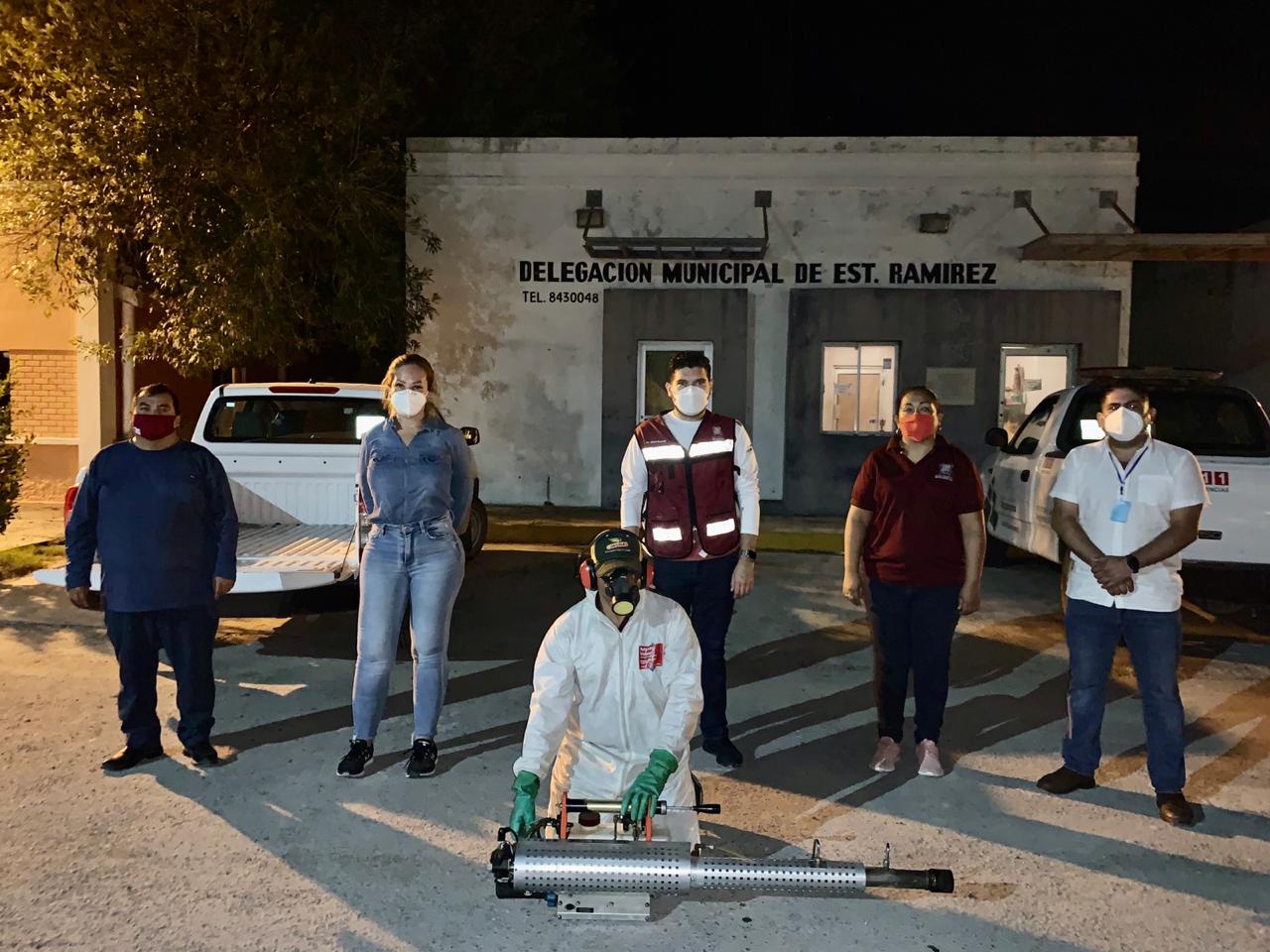 El secretario de Desarrollo y Bienestar Social, José Alberto Granados Favila informó que con el apoyo de la directora de Espacios Públicos, Myria Leal Guajardo se realizan los trabajos de fumigación, esto, atendiendo la instrucción del alcalde Mario Alberto López Hernández.