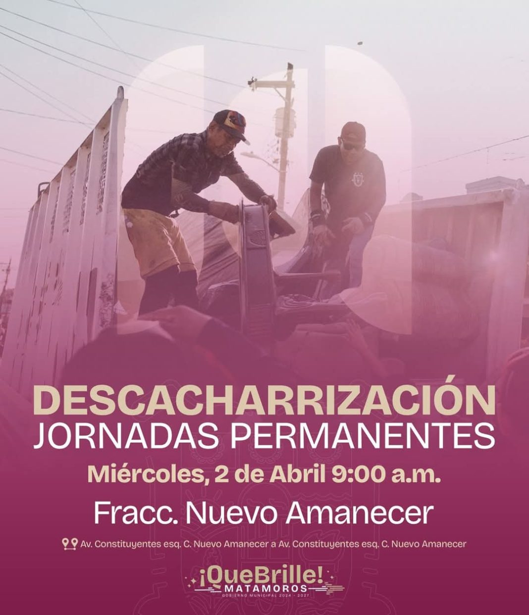 Se solicita a los residentes del Fraccionamiento Nuevo Amanecer que coloquen sus cacharros en lugares visibles y accesibles para el personal encargado de la recolección. Además, se recuerda que esta jornada es completamente gratuita y busca contribuir al bienestar colectivo de todos los habitantes.