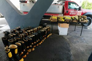 El equipo entregado a los elementos de Protección Civil y Bomberos consistió en: chaquetones, pantalones, un overol y 29 pares de botas para combate contra incendio, así como también, tres tablas rígidas para traslado de paciente y 29 equipos completos de respiración.