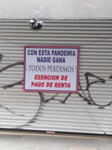 Con mantas alusivas a sus exigencias, medianos y micro empresarios con estableicmietoes en el centro de esta localidad fronteriza manifiestan su sentir y pesar por el cierre de apoyos por parte de las autoridades.