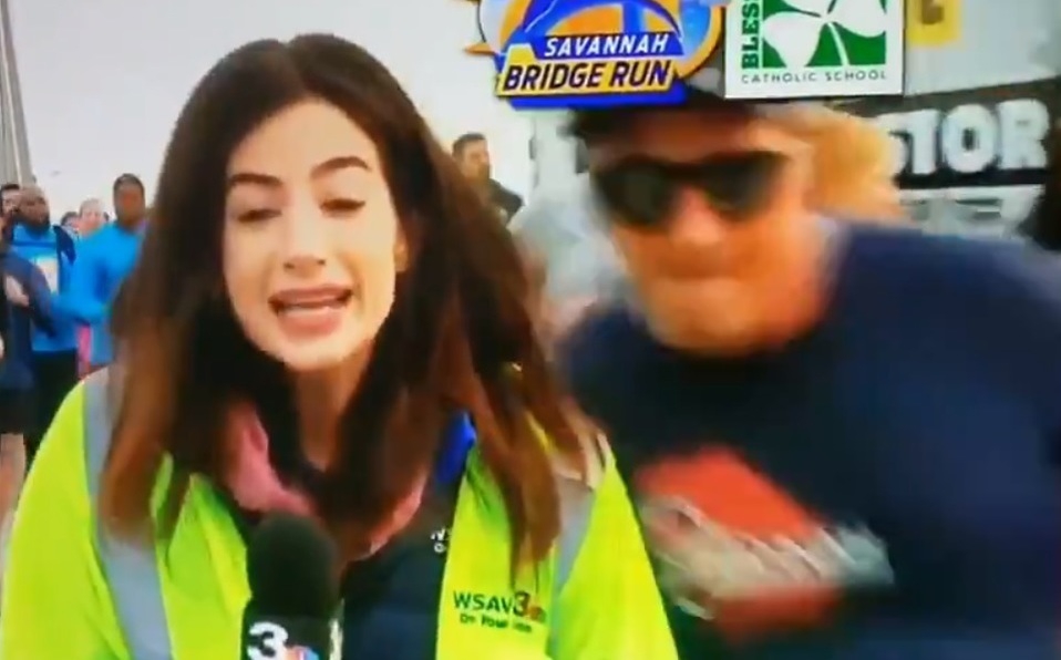 La reportera de la cadena de televisión estadunidense WSAV-TV, Alex Bozarjian fue agredida sexualmente por un corredor durante su enlace en vivo por la cobertura del Maratón de Savannah.