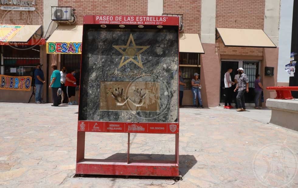 El comerciante explicó que la estrella del divo de Juárez y sus palmas plasmadas en cemento se reubicaron a ese punto hace dos años con 10 meses, en el primer aniversario luctuoso de Alberto Aguilera.