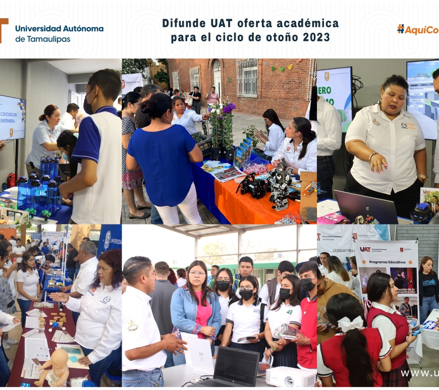 Mediante la participación de las distintas facultades y unidades académicas en diferentes ferias vocacionales, la UAT difunde entre la comunidad estudiantil de nivel medio superior la oferta de programas educativos que impartirá en el próximo ciclo escolar de otoño 2023 (agosto-diciembre).