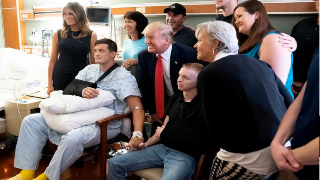 Grisham indicó que el presidente estadunidense, que no tuvo ninguna actividad que supusiera contacto con el público, les dijo a las víctimas y sus familiares reunidos en el hospital que «Dios les está mirando» y les aseguró que su administración está con ellos «todo el tiempo«.