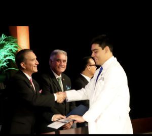 El padrino de la generación, Dr. José Eugenio Cárdenas, agradeció ser parte de la formación académica de los jóvenesy otorgó tres becas para el curso de preparación del próximo Examen Nacional para Aspirantes a Residencias Médicas (ENARM).