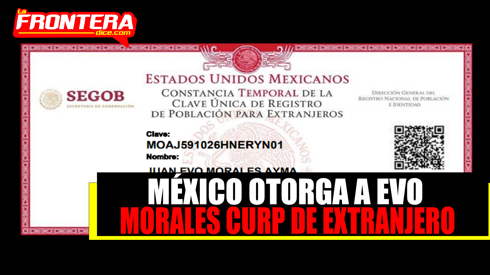 El ex presidente de Bolivia Evo Morales finalmente obtuvo los documentos que lo acreditan como residente permanente en México, para lo que se le asignó una Clave Única de Población (CURP) para extranjeros, como la que expide la Secretaría de Gobernación a los mexicanos.