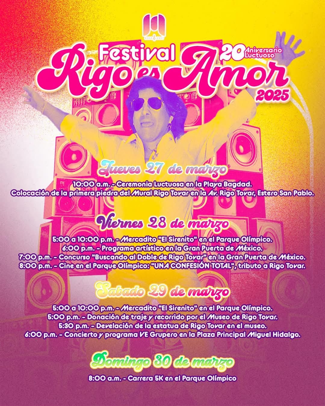 «Invitamos a toda la ciudadanía a sumarse a esta gran celebración en honor a Rigo Tovar, un artista que puso el nombre de Matamoros en alto. ¡Te esperamos! Rigo es amor», expresó el alcalde.