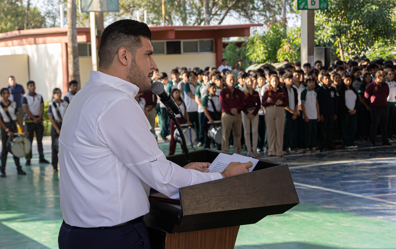 En la ceremonia cívica de honores Olegario Muñiz Cura, comisionado responsable de la DGETI en Tamaulipas, y Rolando Cortés Delgado, director del CBTIS 135, agradecieron la presencia del presidente municipal y resaltaron la cercanía que ha mantenido con las instituciones educativas desde el arranque de su administración.