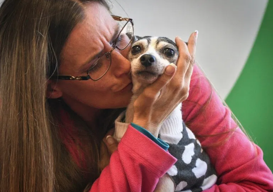 Mientras besaba y abrazaba a su mascota perdida hacía tantos años, susurró a la perra: “¿En dónde has estado?”.