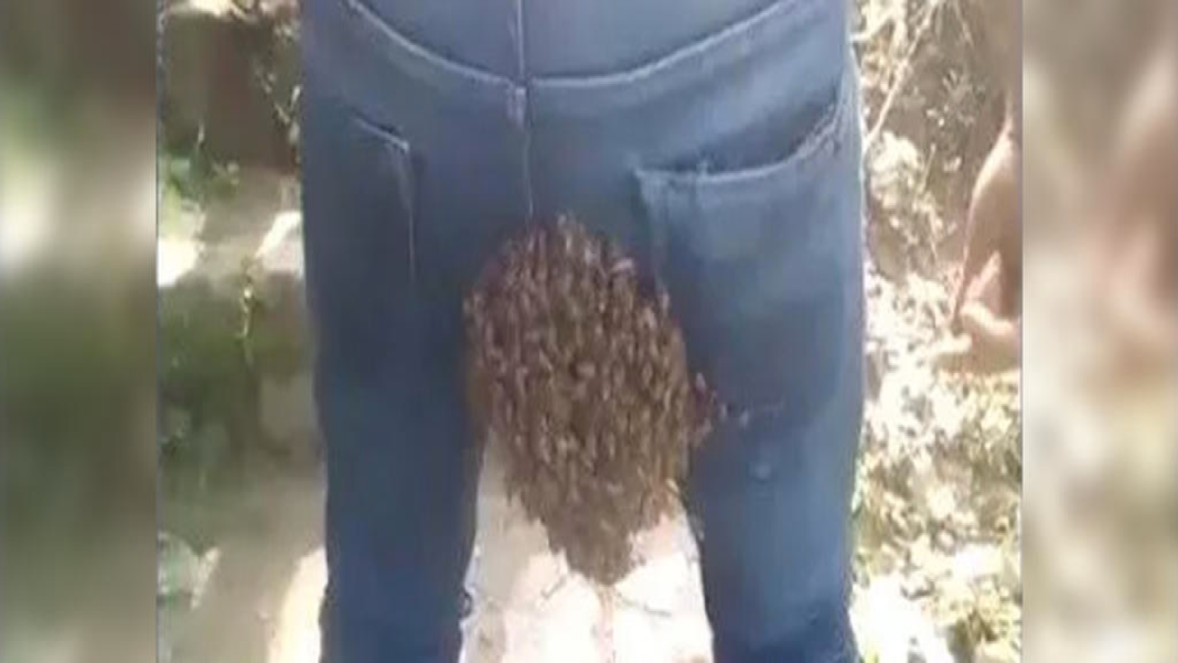 Enjambre aterriza en trasero de joven