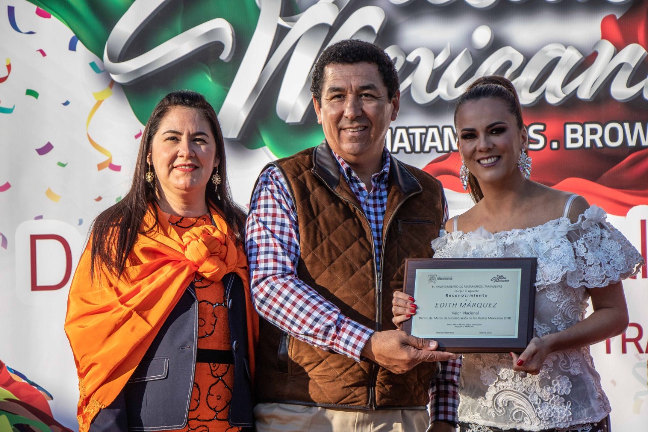El Alcalde mencionó en su mensaje que el mayor reconocimiento que los matamorenses le pueden otorgar a Edith Márquez, es admirando su trabajo, cantando sus canciones, recordando su participación en los programas de televisión, pero sobre todo, nombrándola Huésped Distinguido y Valor Nacional en estas festividades entre Matamoros y Brownsville.