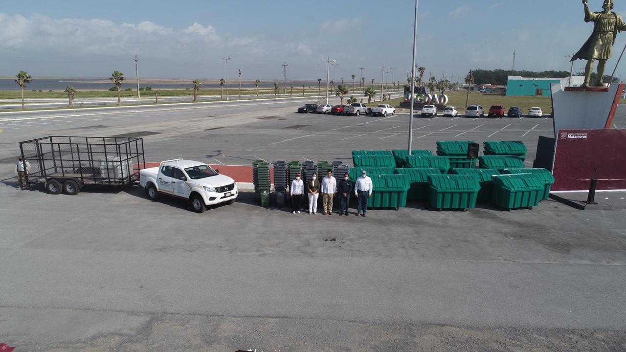 Una camioneta 4X4, un remolque, 18 contenedores de basura y 70 estaciones para la separación de residuos con inversión superior a un millón 800 mil pesos, entregó este lunes el alcalde Mario Alberto López Hernández para mantener limpia la Playa Bagdad.