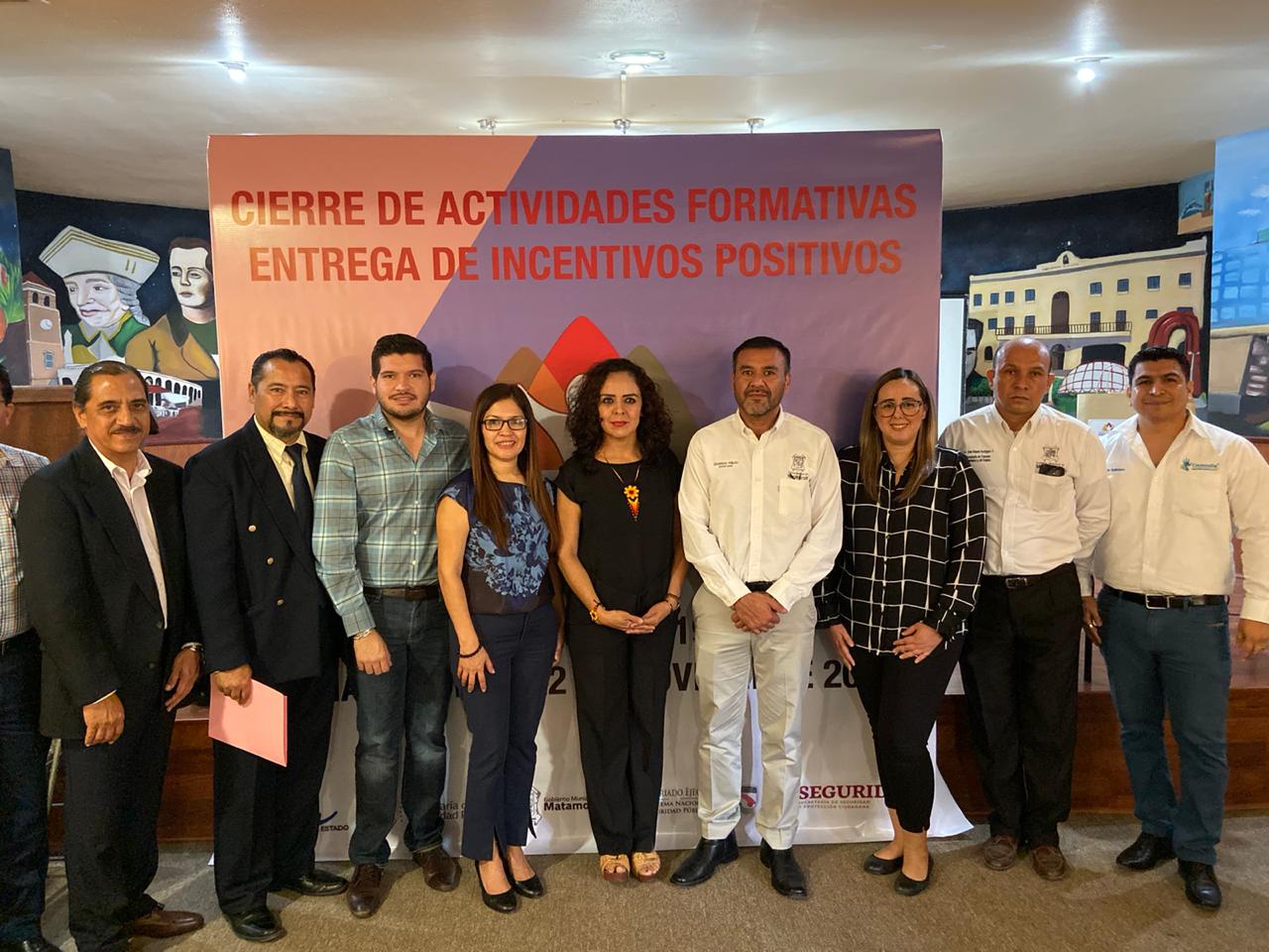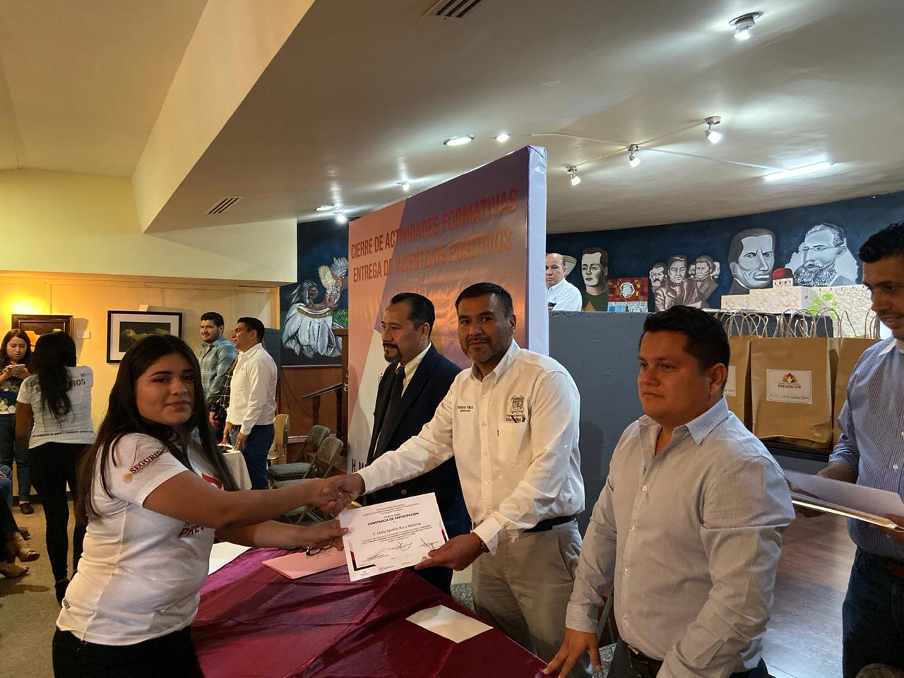 En la clausura de las actividades y entrega de incentivos positivos también estuvieron presentes: Miguel Ángel Hernández Beltrán, representando a la Secretaría del Ayuntamiento; Karim Quintero Rochin, coordinador de Crexendia; Juan Manuel Rodríguez, enlace operativo Fortaseg; Marco Antonio González, director de Deportes Municipal.