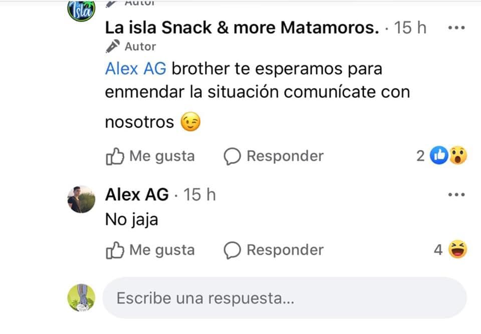 “Alex AG brother te esperamos para enmendar la situación, comunícate con nosotros”.